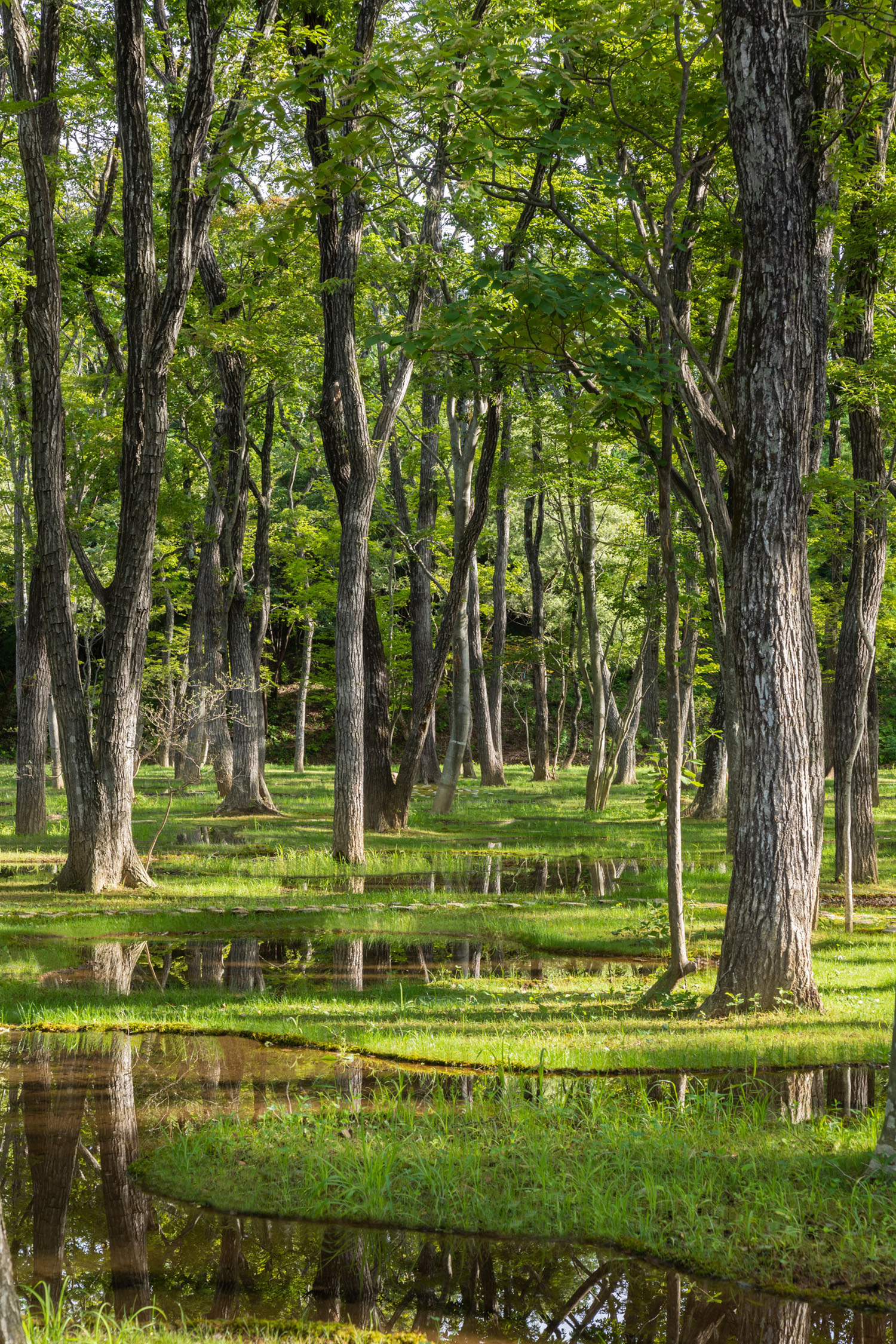 Situated near the Nasu Mountains, this project relocates an entire forest to an adjacent meadow, integrating past and present landscapes into an intricate, living composition. Formerly a paddy field, the site retains traces of its agrarian past, including a sluice gate that now feeds water into a network of interconnected ponds. By transposing the forest onto this terrain, Ishigami orchestrates a new ecological synthesis, where moss, trees, and water coalesce in a density unseen in nature.
