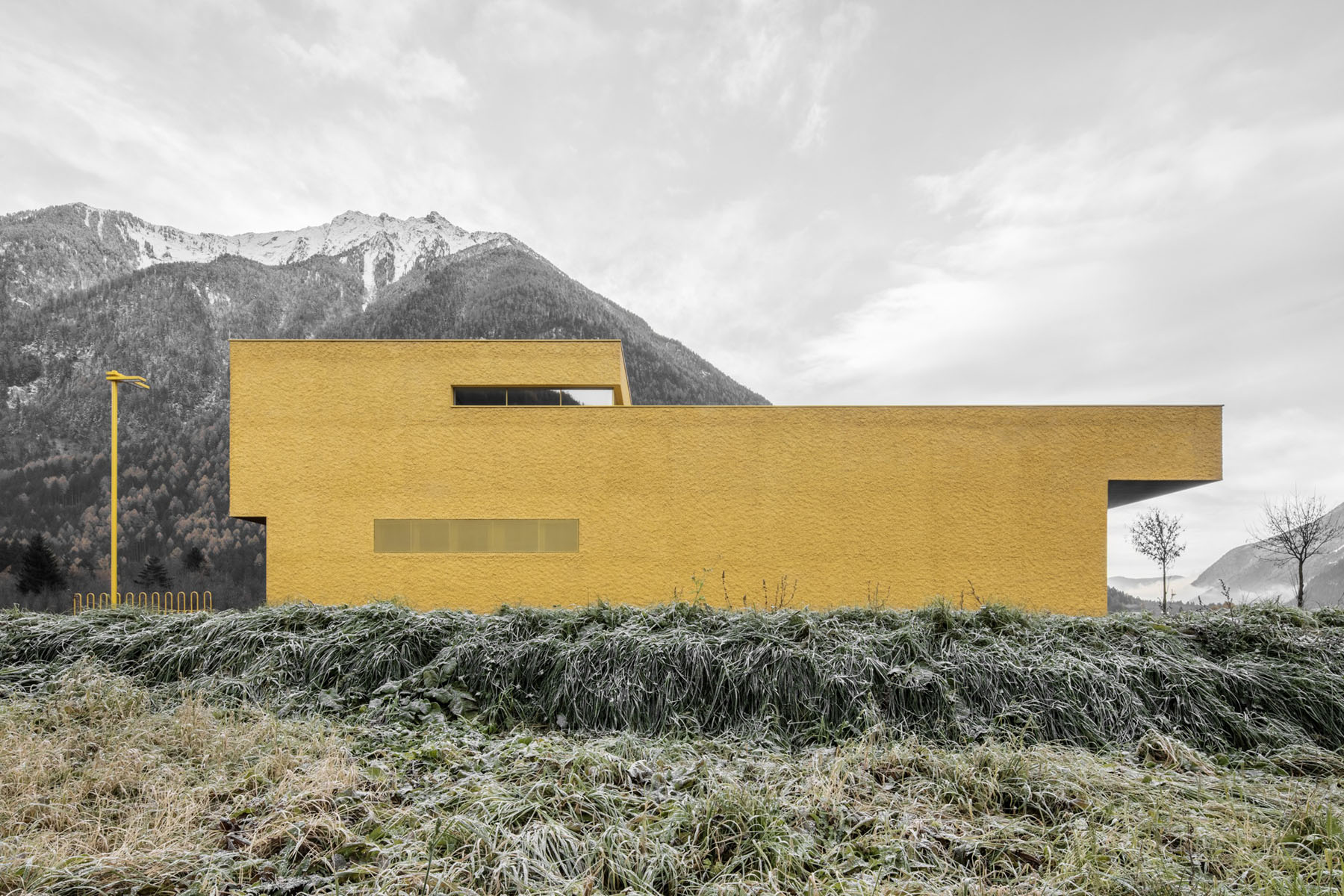 The building is characterized by clear and simple shapes, where redundant ornaments were deliberately omitted. However its evident golden yellow appearance gives the whole structure a playful and surprising attribute. "Sand in Taufers is known as an energy saving municipality and for this reason spends a lot on sustainable politics for environment and climate. Therefore also the fire station has to be an high level energy building; that's why the facades are isolated before being covered with a gritty plaster,” explained the architects.