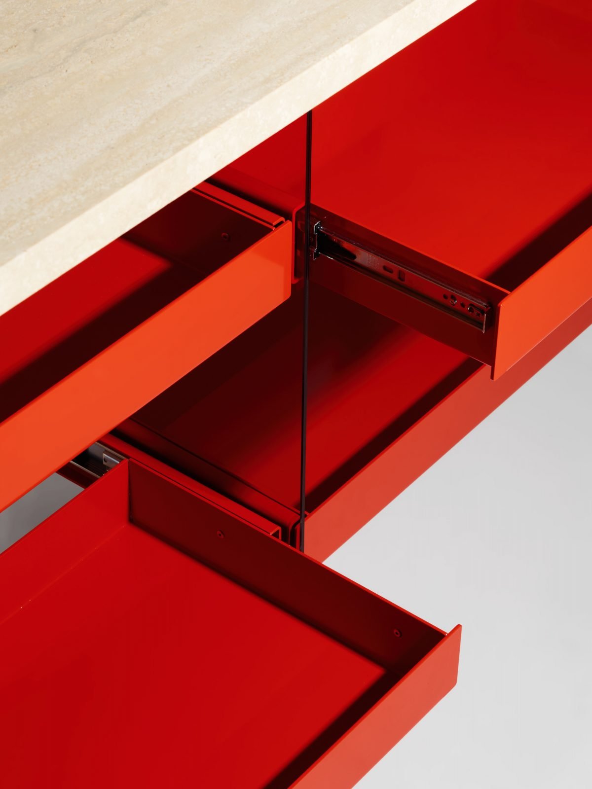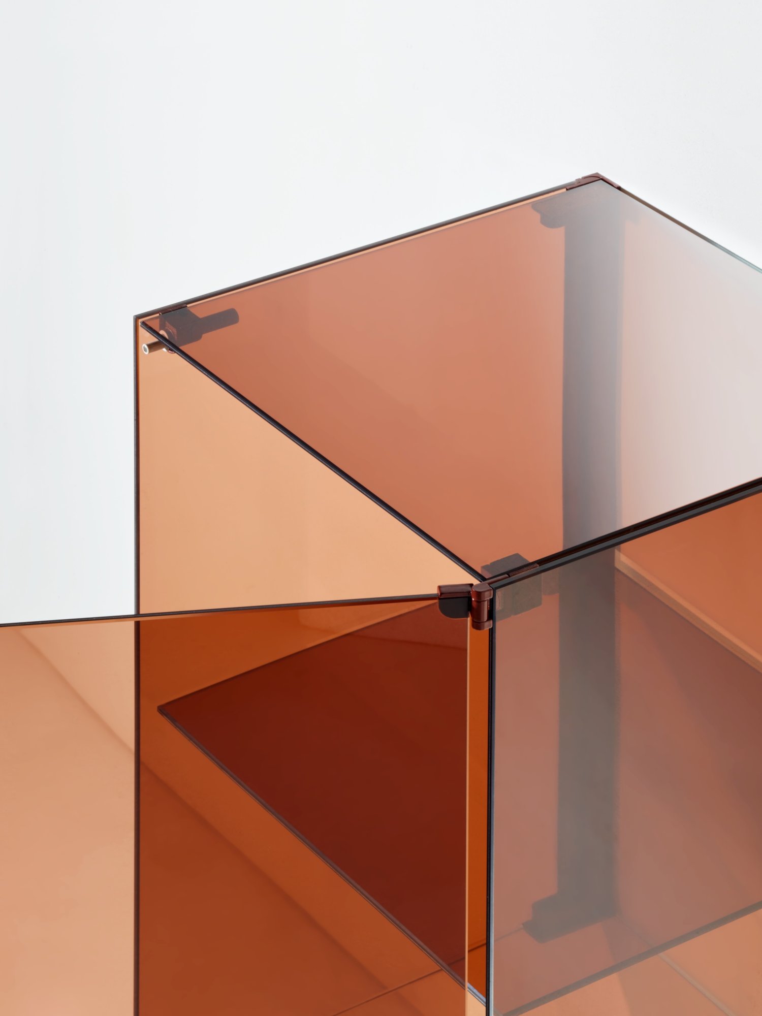 Its modular nature gives the user the creative freedom to layer colour and generate a whole array of hues, from subtle to bold. The transparent quality of the volumes renders the contents monochromatic, resulting in an aesthetically harmonious and orderly appearance.
