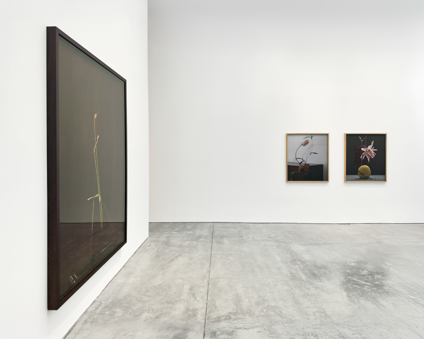 His photographic series Roses for Mother, installed across the gallery’s Eastern wall, anchors the show with its fragile yet forceful presence—botanical characters suspended, clipped, and contorted into complex compositions that balance tenderness with tension.