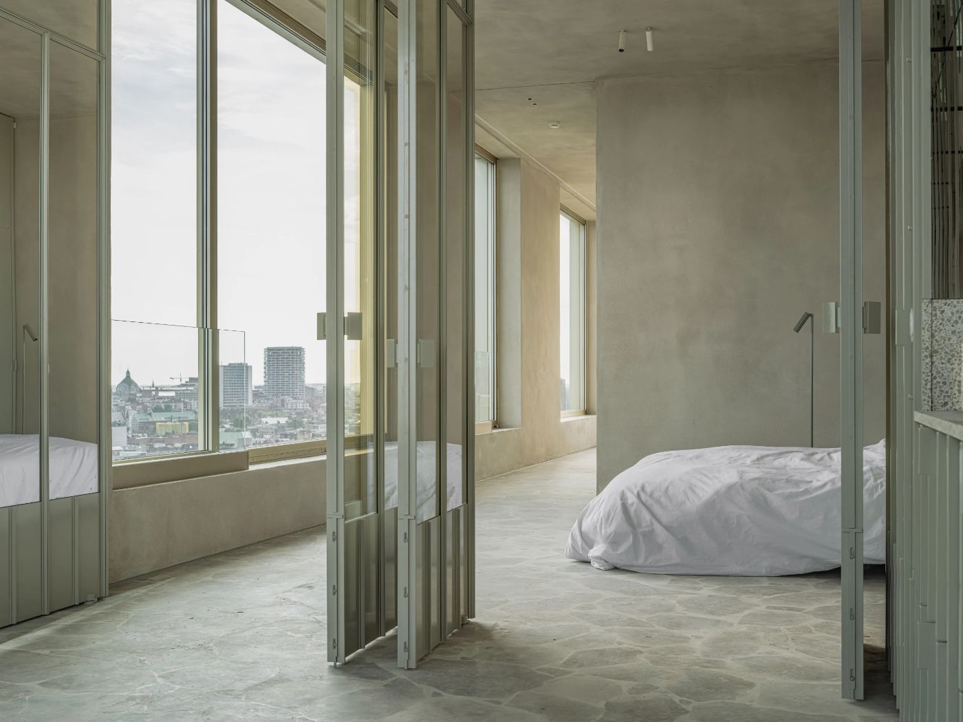 Being both the owner and the architect, Bruno Spaas makes the most of the materials he finds suitable for a project. The penthouse apartment on Westkaai in Antwerp’s northern harbour area was like a blank canvas when Spaas decided to buy it in 2018. Situated on the top floor in a tower building conceived by Swiss architects Diener & Diener, Spaas immediately saw its potential.